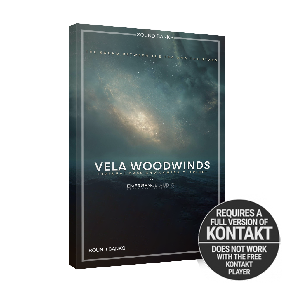 Vela Woodwinds isn’t just another orchestral library — it’s an atmospheric voyage. Inspired by the Vela constellation (Latin for sail), this collection transforms the soulful breath of bass and contra clarinet into textures that drift like starlight across cosmic oceans. Instead of fast articulations and classical flourishes, Vela offers a slower, deeper exploration of tone — a meditation on sound as space.