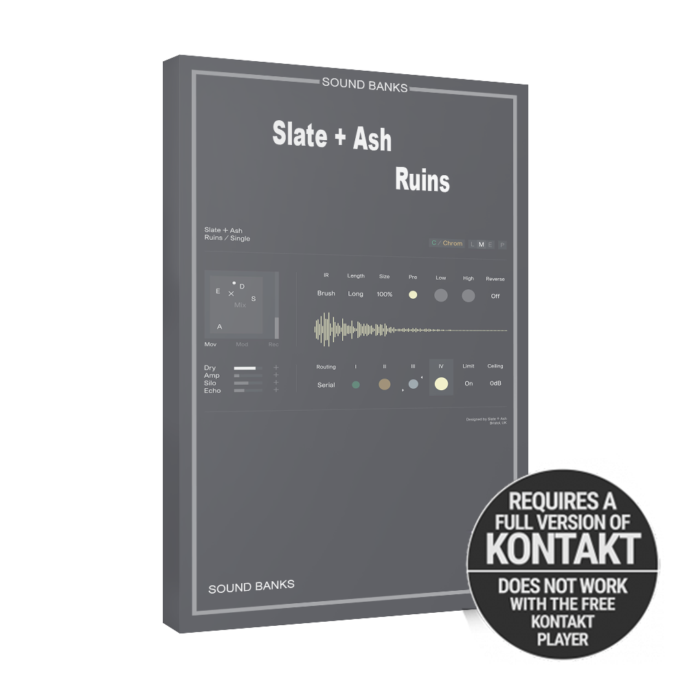 The RUINS sessions were controlled sonic experiments designed to push the boundaries of guitar performance. Featuring multiple mic perspectives and re-amped signals, RUINS gives you: